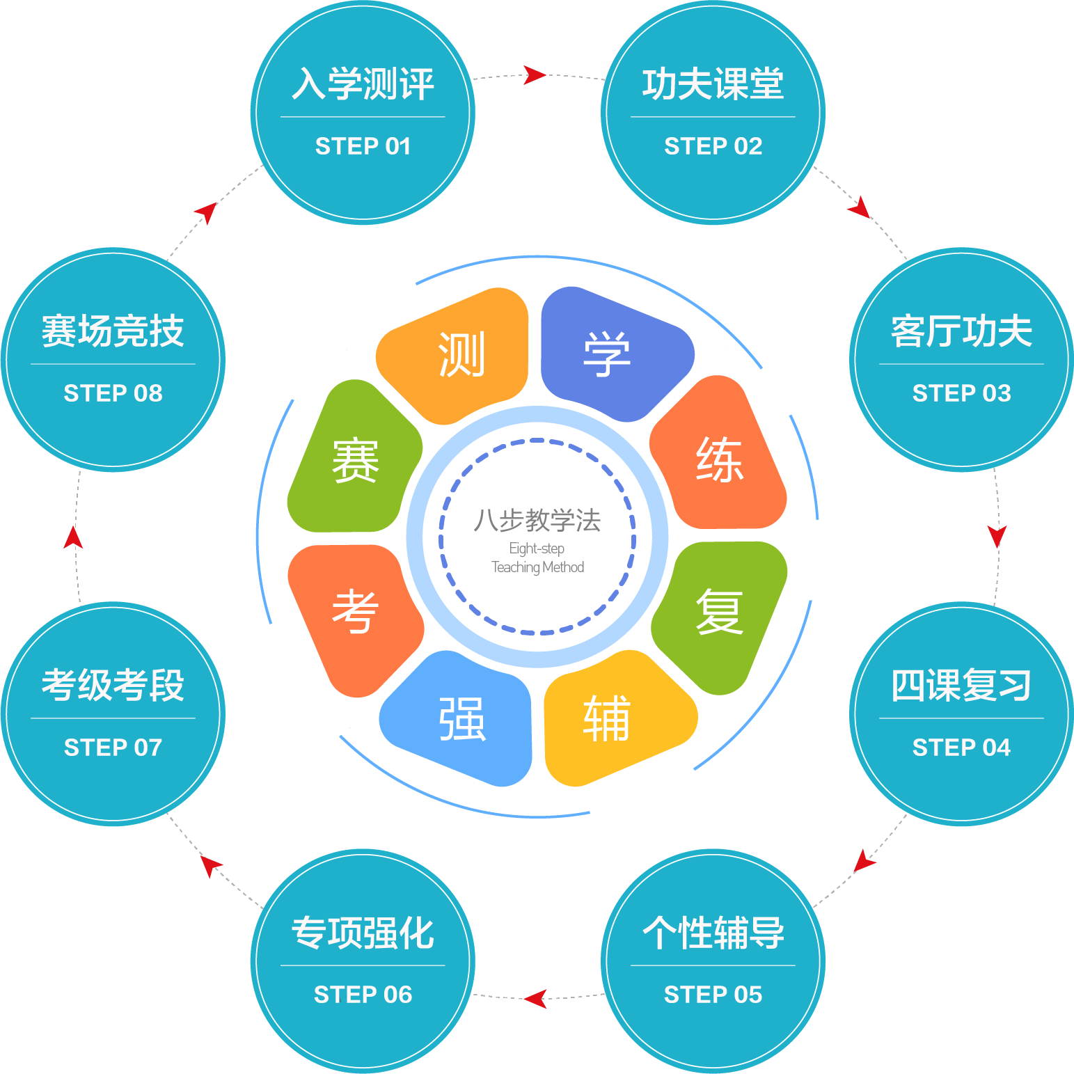 严格按照国家武术标准和教学大纲进行教学,确保教学内容科学规范。